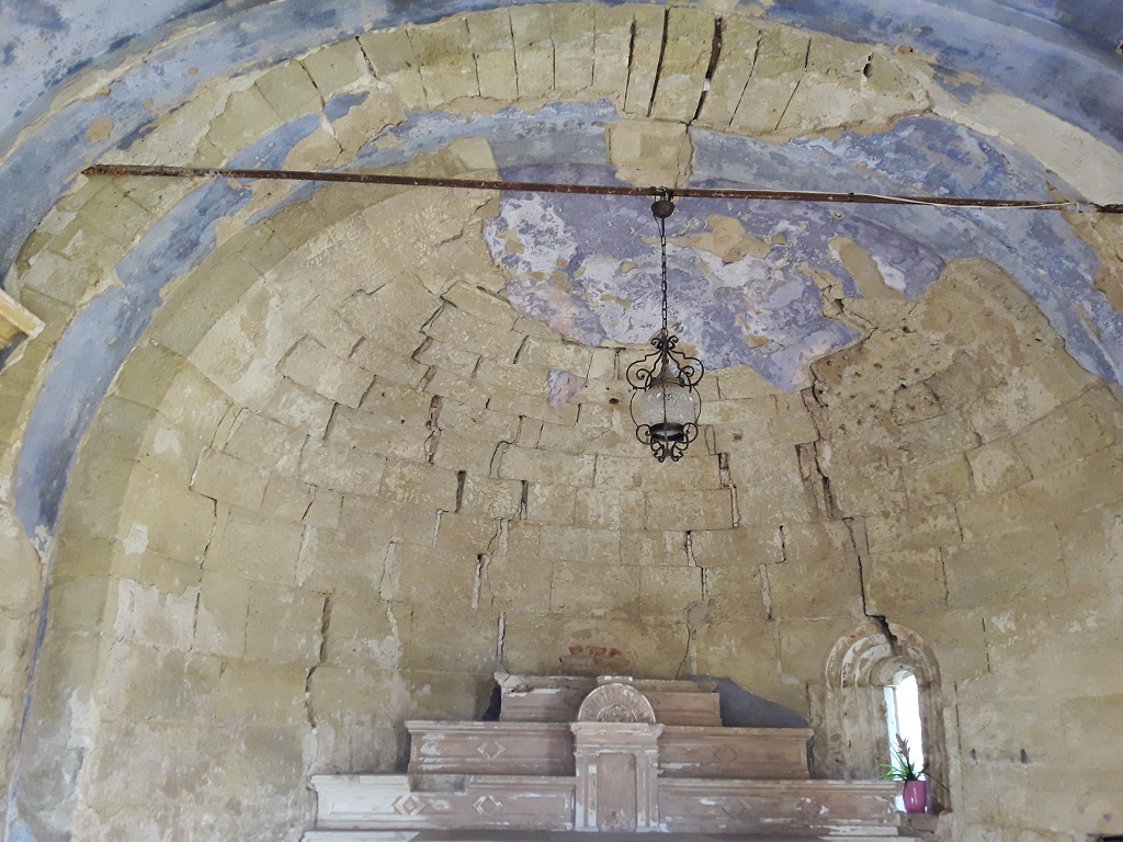Interno: Erano presenti resti di un frammento di affresco, ora staccate per preservarlo, dell'Arcangelo Gabriele. |