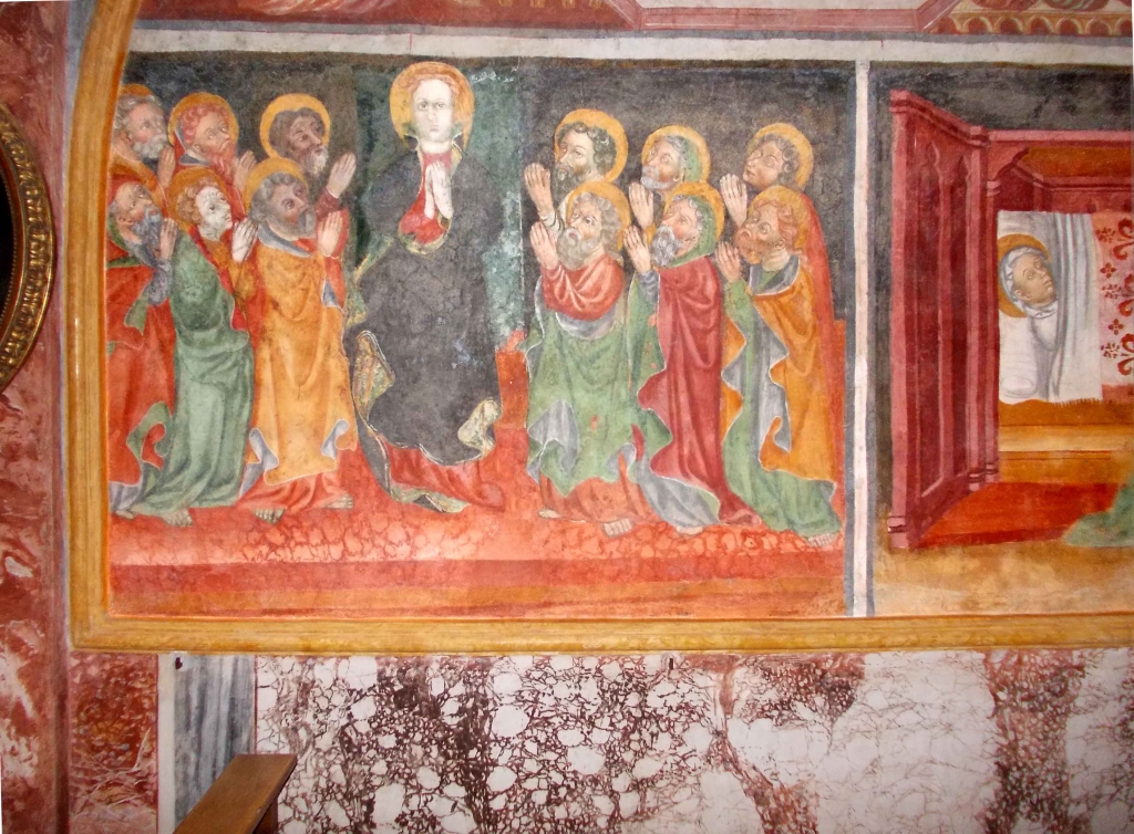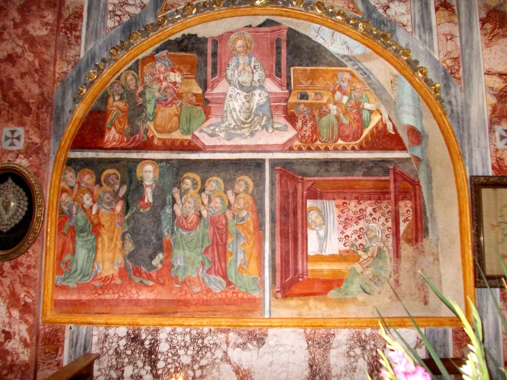Interno: affreschi di inizio '400 con storie della Madonna, resti di un ciclo molto più esteso. |