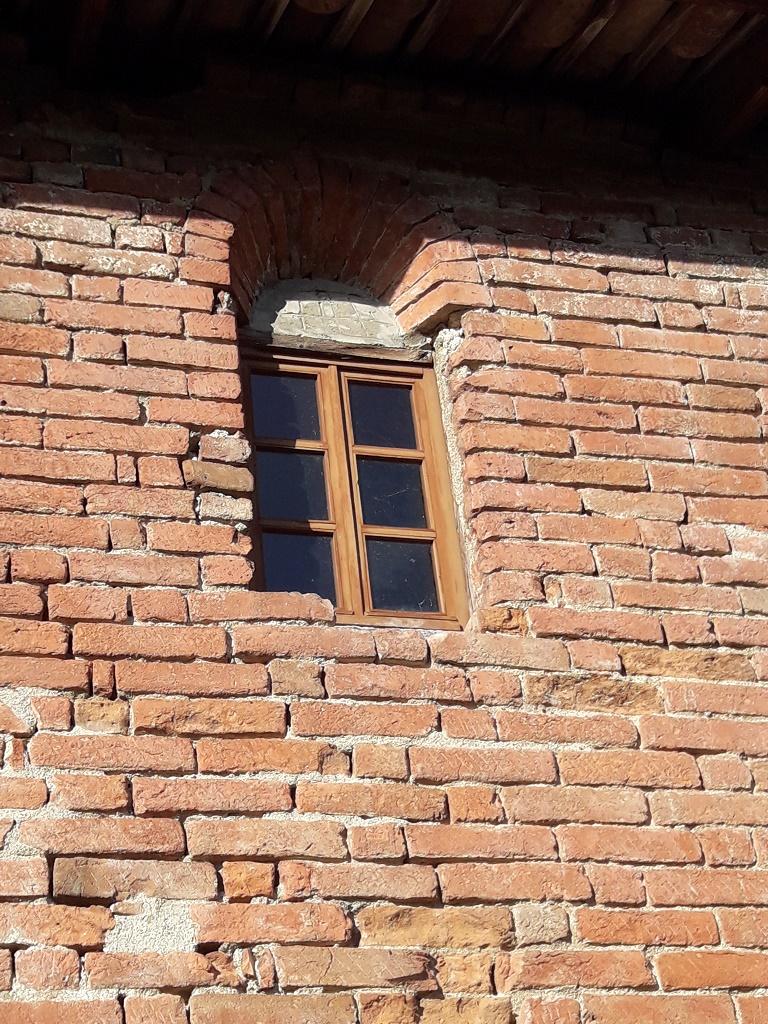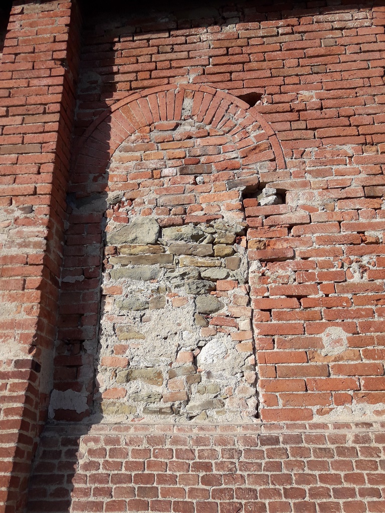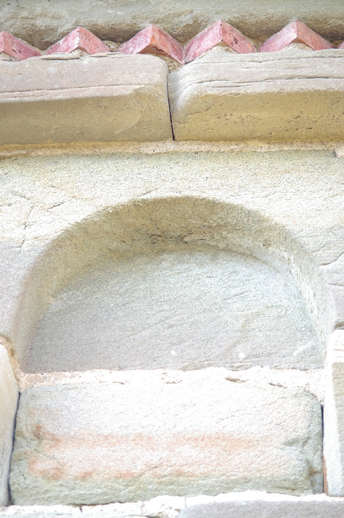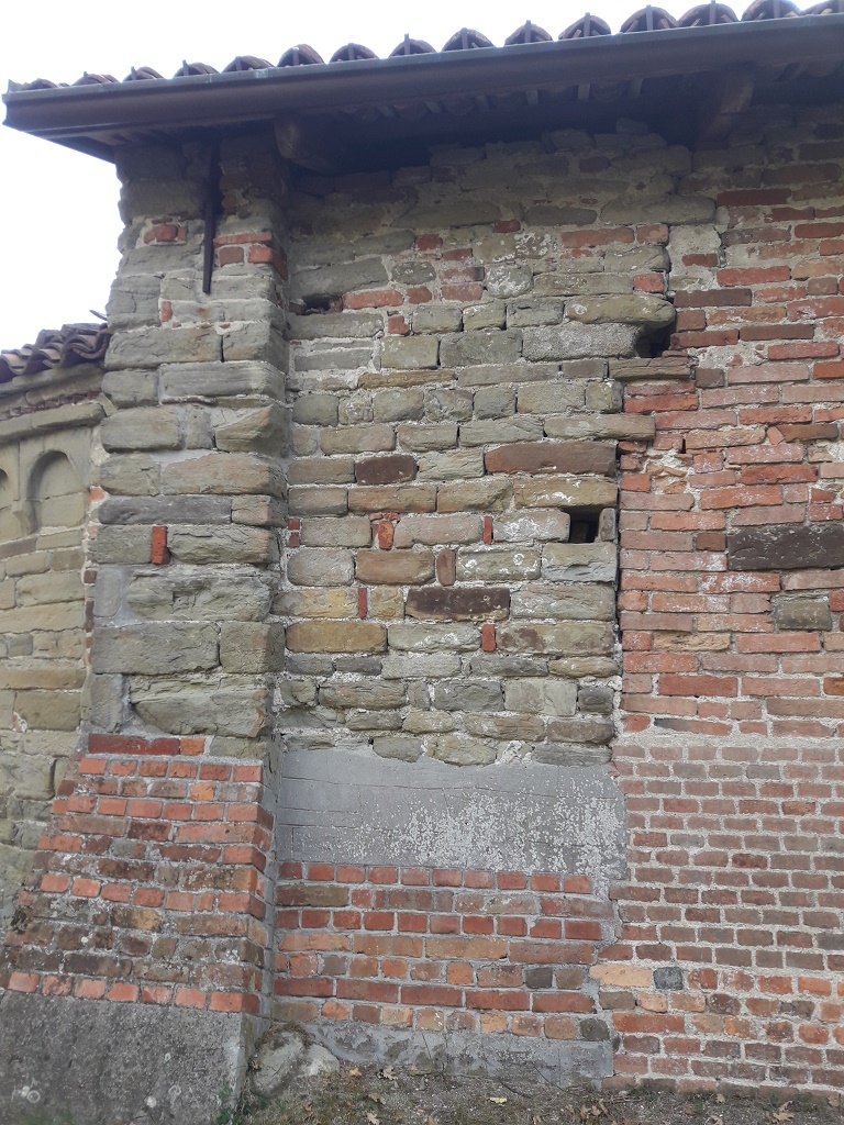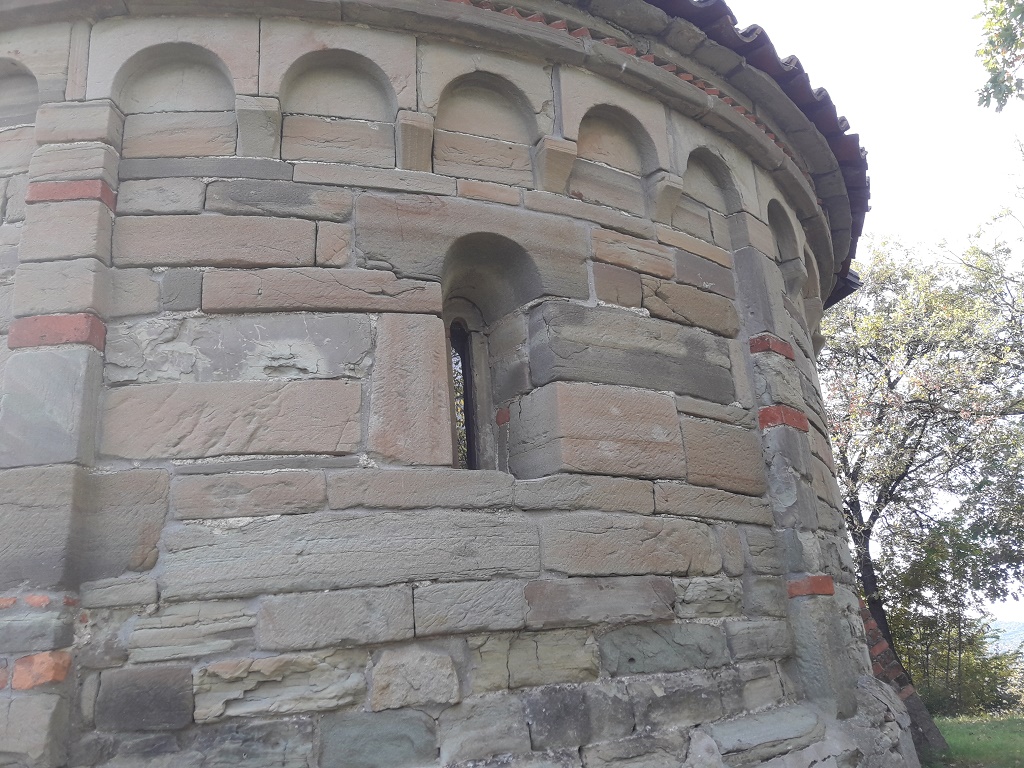 abside romanica, presumibilmente del XII secolo con archetti in arenaria sovrastati da un cornice a dente di sega in cotto. |