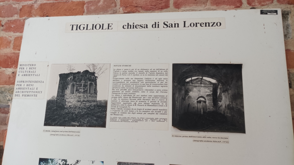 La Chiesa si trova a Tigliole (AT), nota come San Lorenzo. Periodo prevalente: XII secolo. Livello di interesse: 2 (Merita una deviazione). Elementi presenti: architettura. Da vedere: esterno.