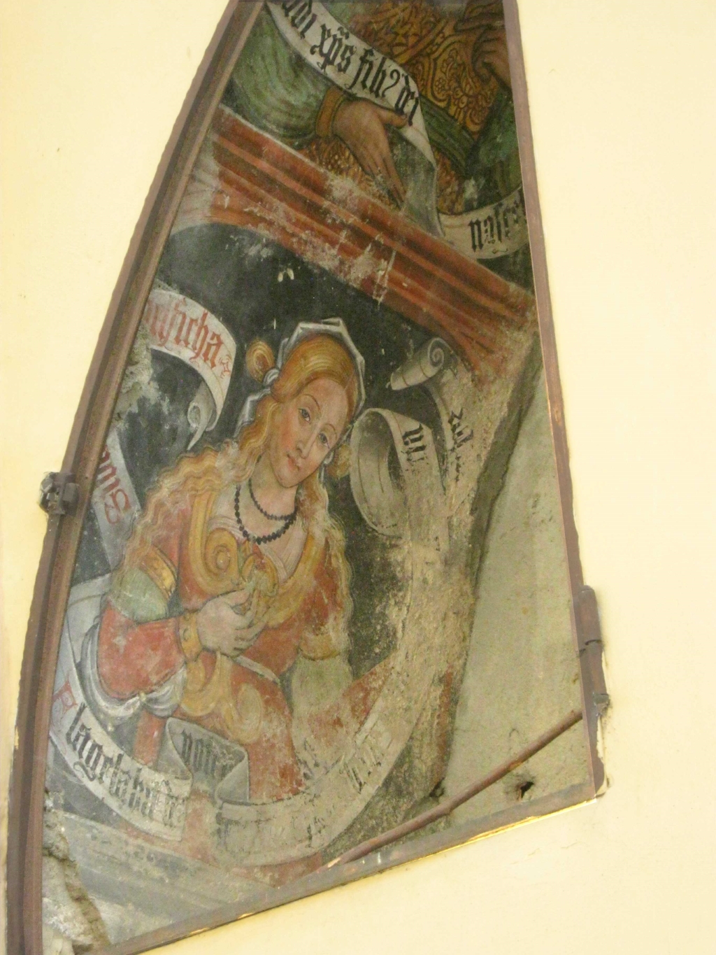 Interno: una cappella laterale presenta una doppia stratificazione di affreschi di cui il primo strato risalirebbe all'inizio del '400. |