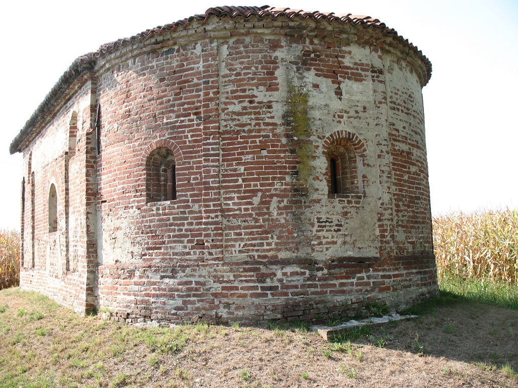 Esterno: abside in mattoni con monofore fortemente strombate. |