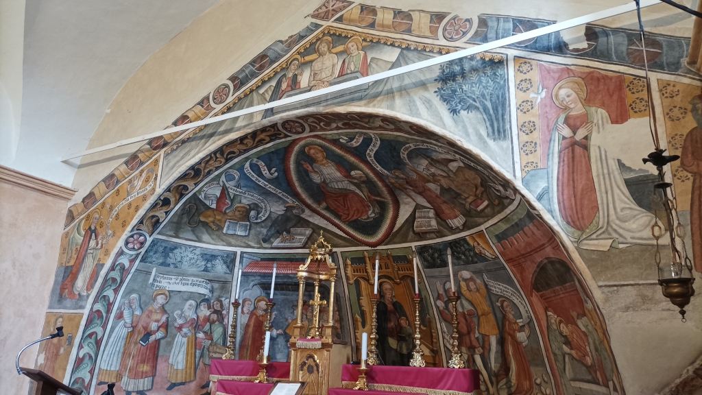 Notizie generali: Risalente al XII secolo, la cappella rappresenta un prezioso esempio di architettura romanica e custodisce al suo interno un ciclo di affreschi di straordinario valore artistico. |