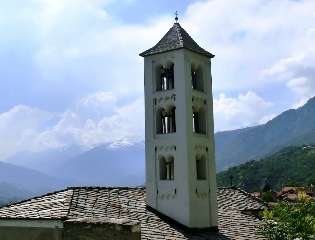 Notizie generali: edificata in stile romanico dai marchesi di Susa all'inizio dell'XI secolo fu in gran parte demolita nel 1725 e ricostruita nel 1727 quindi ingrandita nel 1825. |