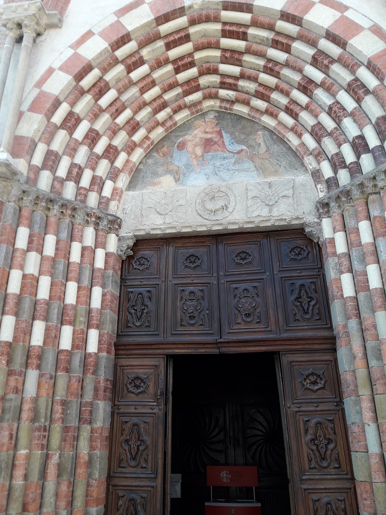 Campanile: vi sono conservate numerose opere d'arte tra le quali Madonna col Bambino (1377) di Barnaba da Modena, Adorazione (1508) di Macrino d'Alba e una tavola proveniente dalla bottega di Macrino raffigurante la vergine col Bambino tra Sant'Agostino e Santa Lucia. |