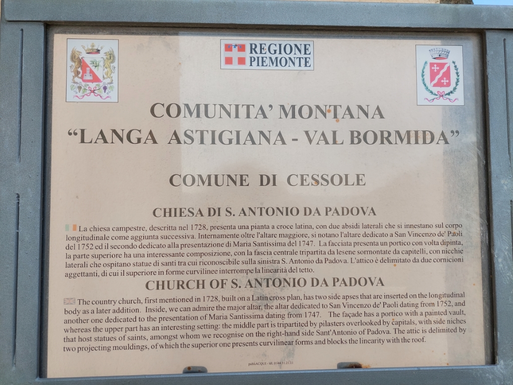 La Chiesa si trova a Cessole (AT), nota come Sant'Antonio. Periodo prevalente: XVIII secolo. Livello di interesse: 0 (Segnalata). Elementi presenti: architettura. Da vedere: .
