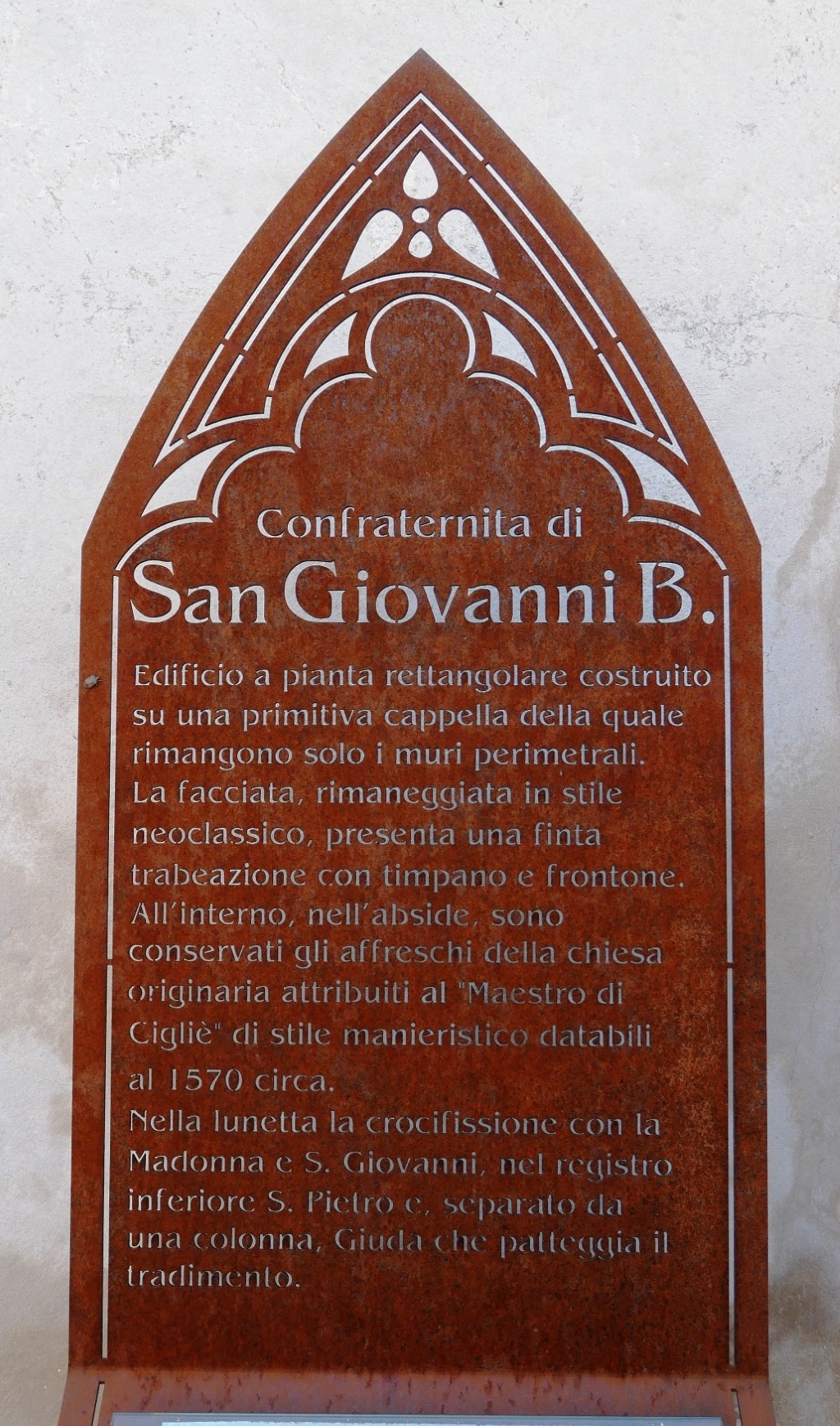 La Confraternita si trova a Cigliè (CN), nota come San Giovanni Battista. Periodo prevalente: XVI secolo. Livello di interesse: 0 (Segnalata). Elementi presenti: pittura. Da vedere: interno.