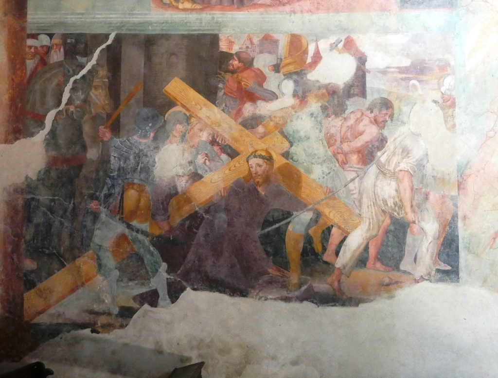 Interno: ciclo di affreschi del 1573 narranti la Passione del Cristo. |