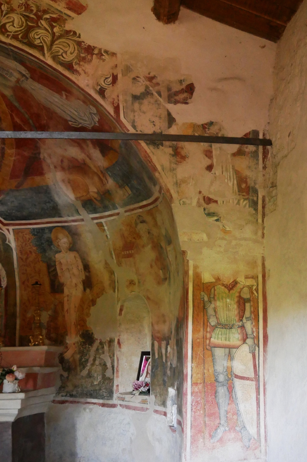 Interno: affreschi quattrocenteschi attribuiti da alcuni a Macrino d'Alba (notizie dal 1494-morto 1528) da altri a Antonio Occelli (notizie intorno al 1532) da altre ancora a frater Enricus pictor. |