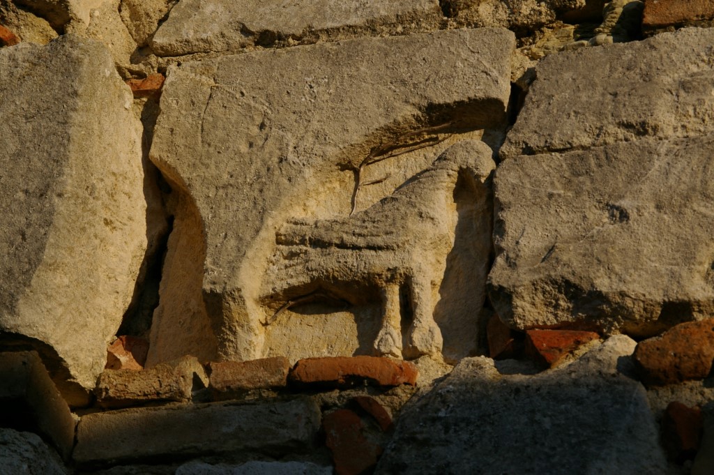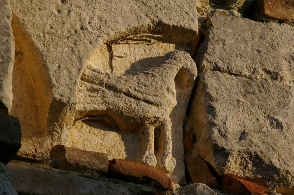 Esterno: presenta elementi decorativi romanici riutilizzati e inseriti nella muratura. |