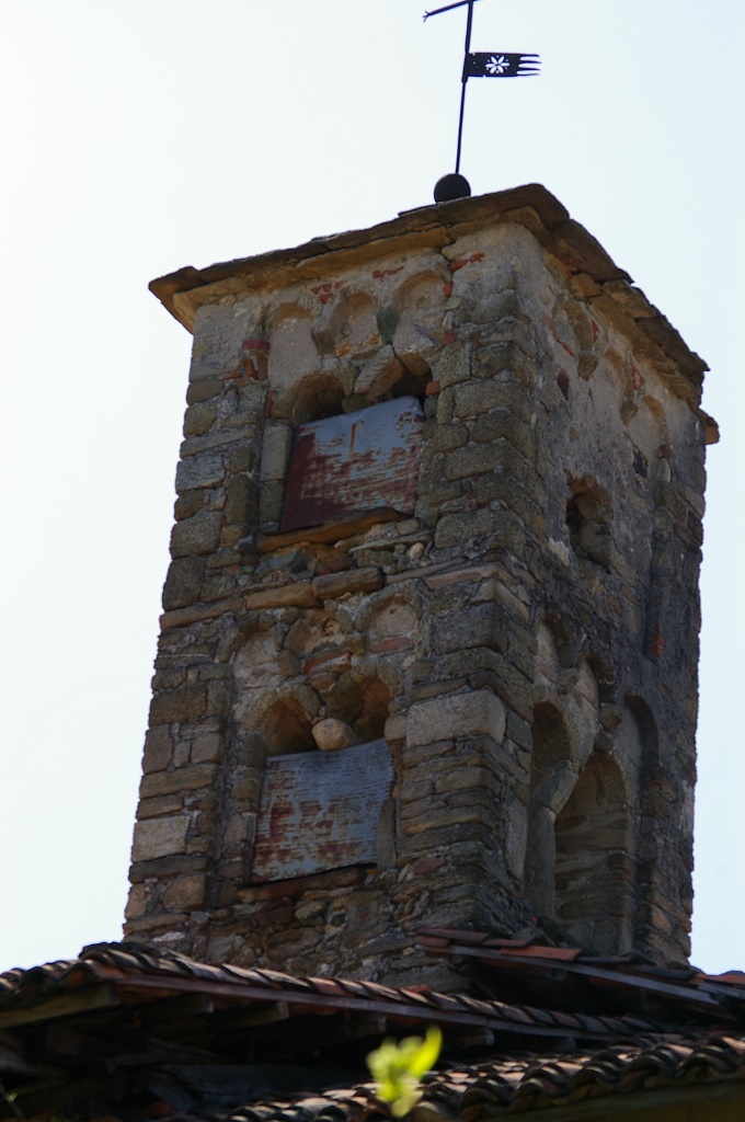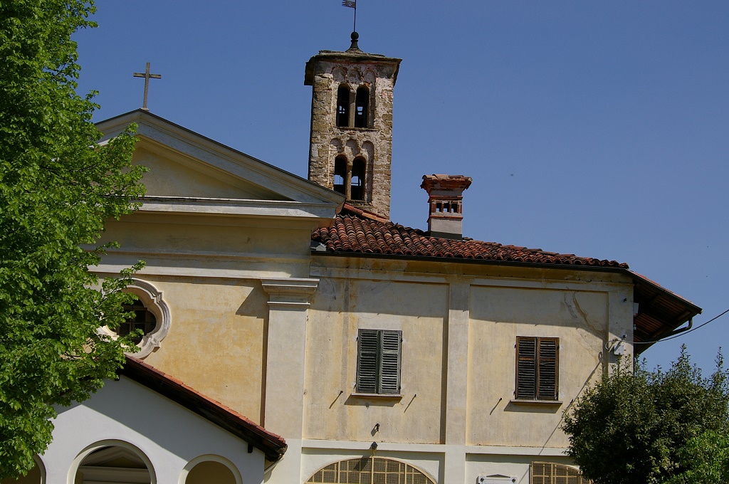 Campanile: romanico, dell'XI secolo, a pianta quadrangolare, costituita da pietre squadrate legate da strati di malta. Negli ultimi due piani bifore con colonnine di pietra, capitelli a stampella; al di sopra da archetti pensili |