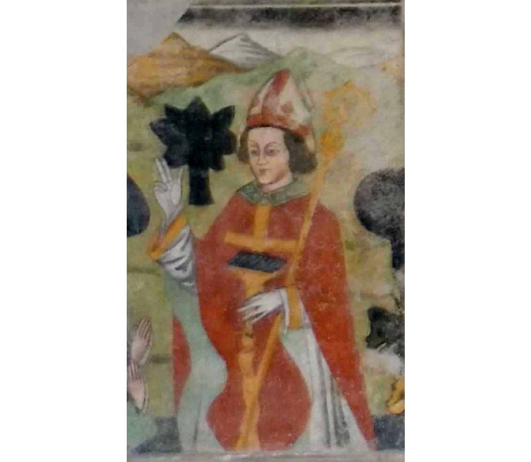 bastone pastorale.. È venerato come protettore di come santo intercessore protegge dal mal di gola..