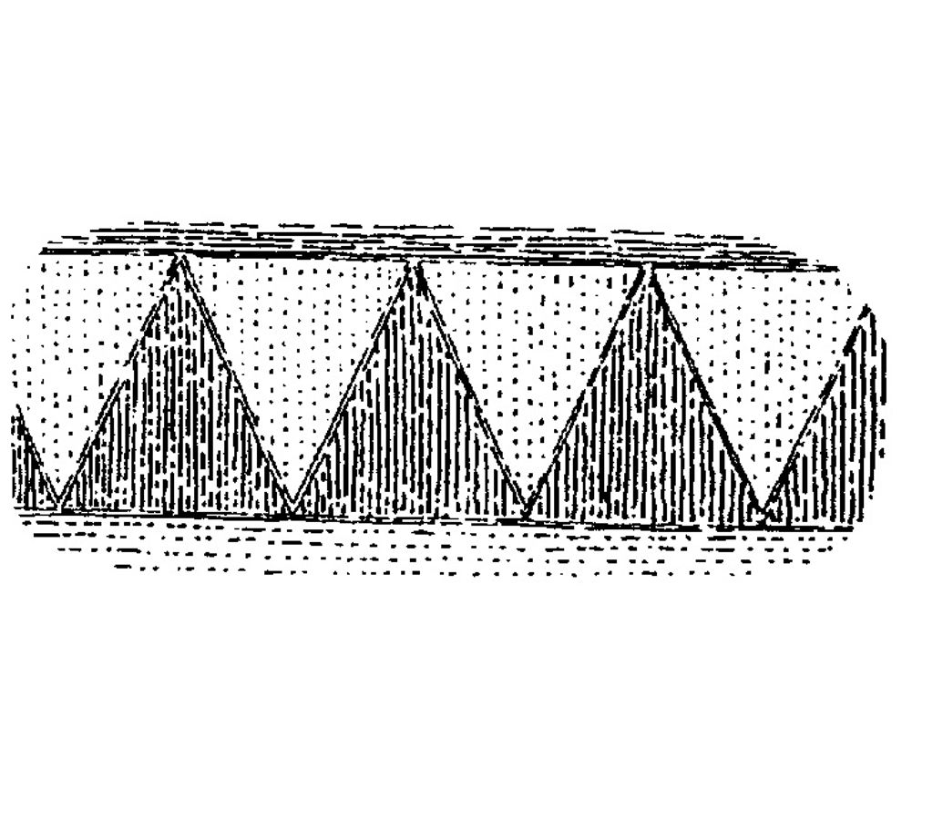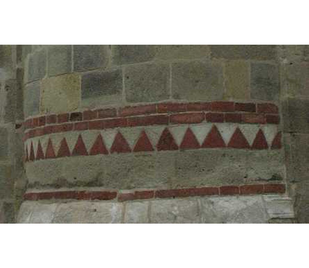 decorazione del paramento murario costituita da triangoli equilateri, isosceli oppure retti, affiancati ed aventi la base disposta in alto o in basso in modo tale da formare una o più fasce orizzontali continue. Se realizzata con una tarsia i tasselli sono in materiali di diverso colore, ad esempio tufo e cotto alternati; se scolpita a bassorilievo viene sfruttato l'effetto chiaroscurale dello sfondato dato alla superficie di una delle due serie di triangoli. |