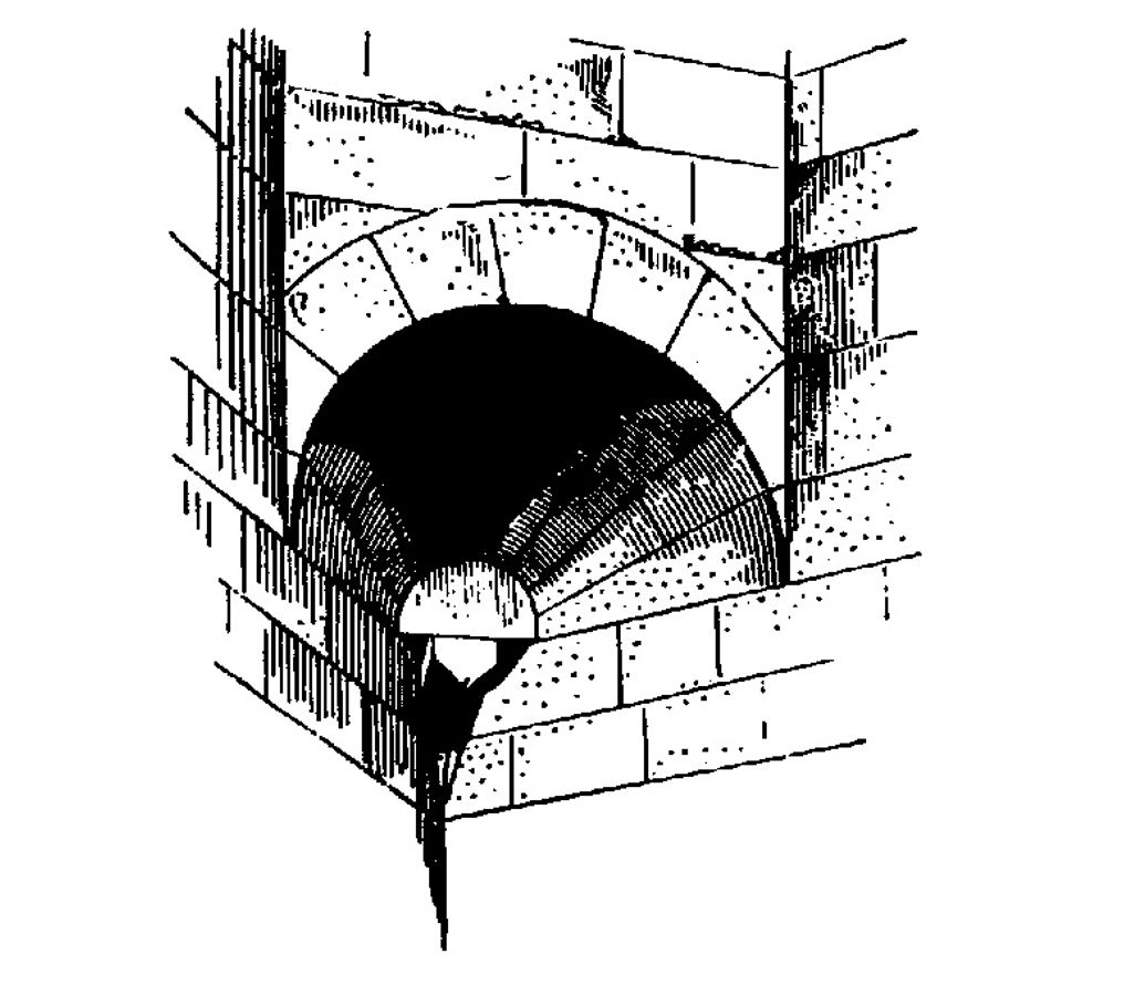 struttura di raccordo, formata da un piccolo arco o da una nicchia semiconca, collocata agli angoli superiori di un vano a pianta quadrata, per creare un ottagono su cui sia possibile impostare una volta a vele ottagona o una cupola. |