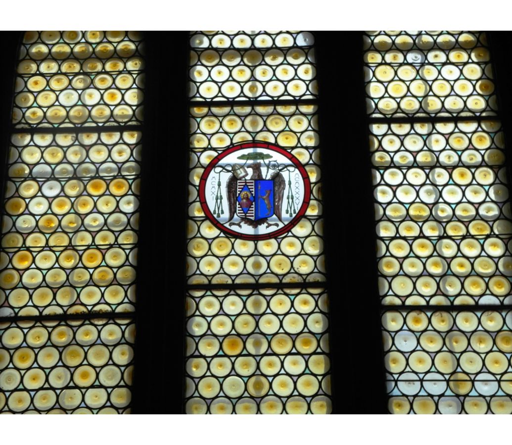 insieme di pannelli di vetro uniti con piombi, che ornano una finestra.