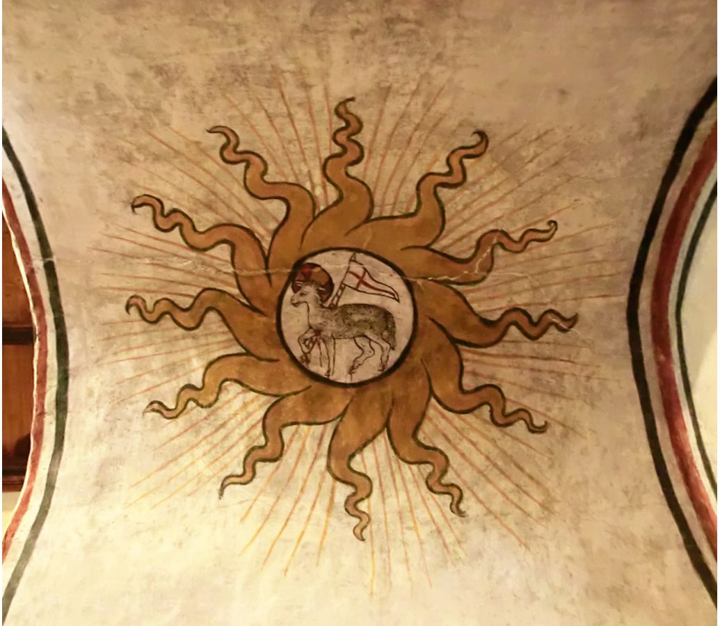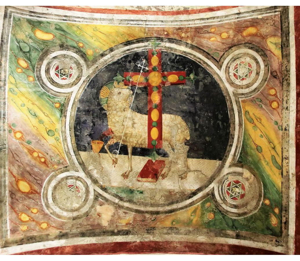 L'agnello, simbolo di colui che illumina la Città santa come indicato da Giovanni (la chiesa viene assimilata alla città) fa si che troviamo spesso nelle chiavi di volta l'agnello che regge sia il libro che la croce o nelle chiavi degli archivolti.