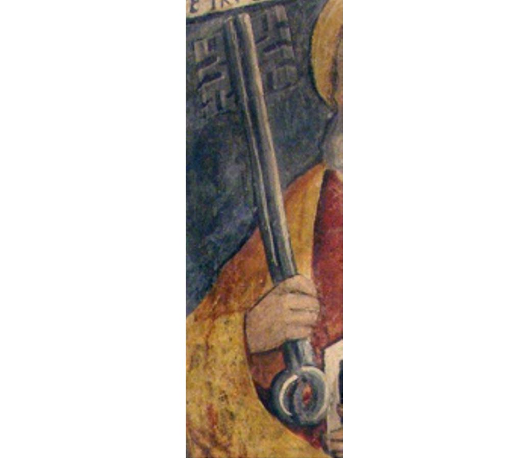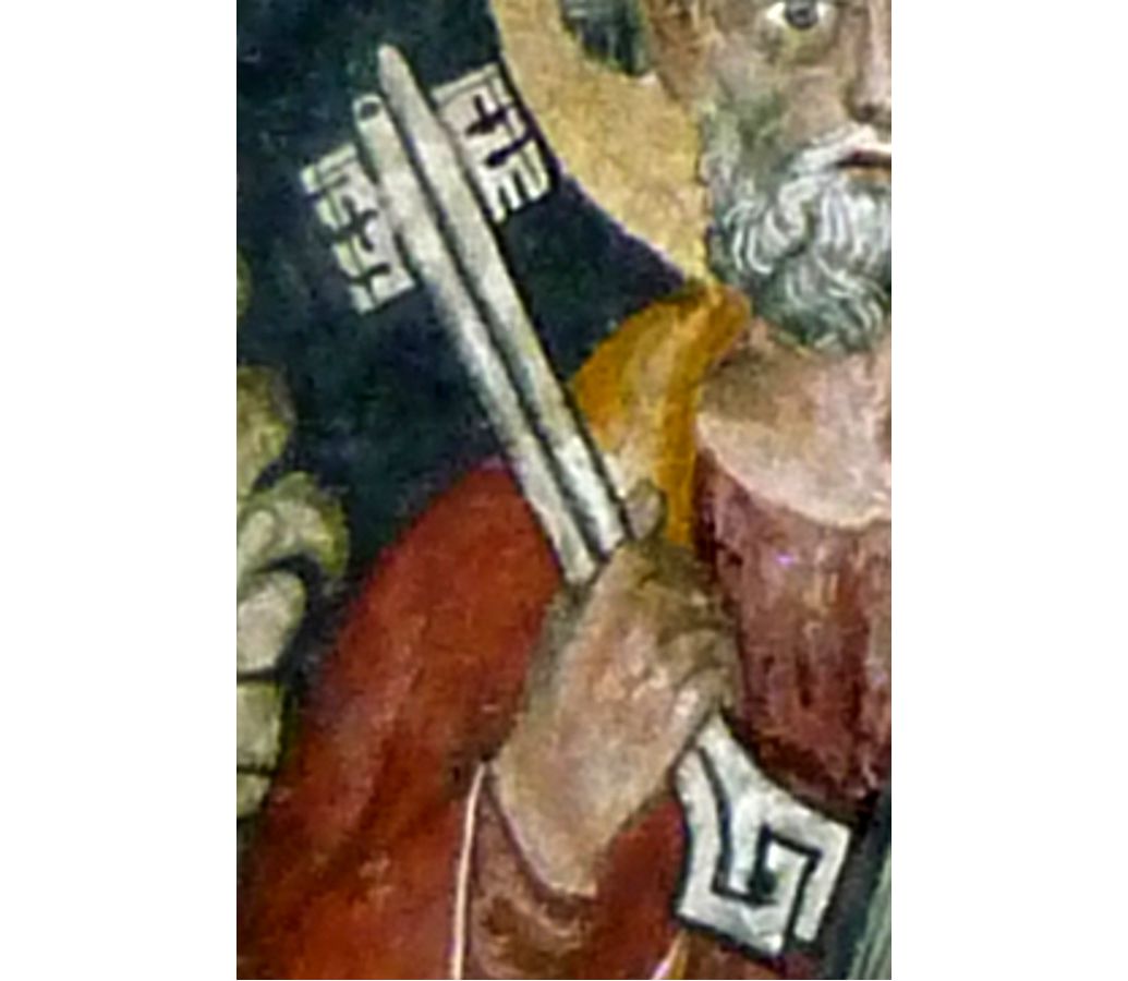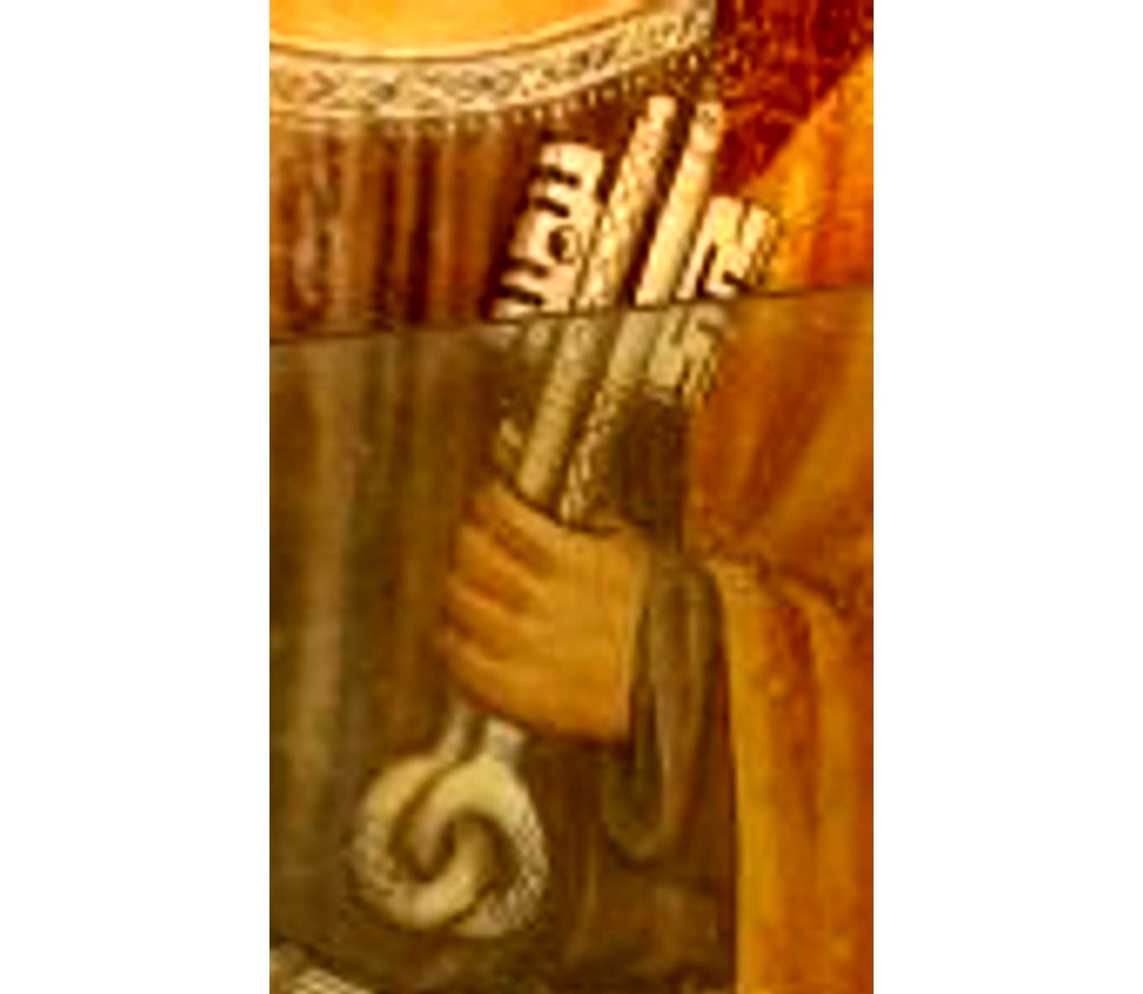 Pietro è rappresentato mentre riceve le chiavi del Paradiso - donatio clavis o traditio clavis - il che lo rende, insieme a Paolo, una delle colonne portanti della chiesa e come tali li troviamo rappresentati normalmente a fianco di Gesù.