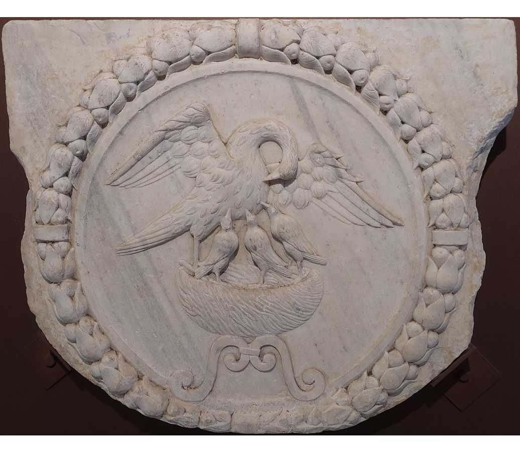 Cigno che nutre i pulcini col suo sangue: simbolo del sacrificio supremo di Cristo.
