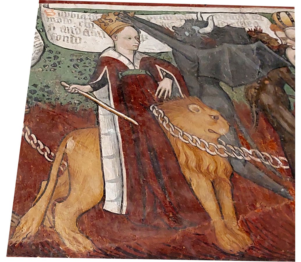 L'animale cavalcato è quasi sempre un leone; in un caso si riscontra anche un cavallo.